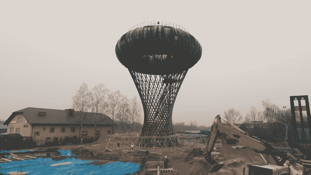 Konstrukcja o wysokości 31 metrów zbudowana w całości w oparciu o rusztowanie modułowe. Cała konstrukcja jest konstrukcją samonośną niekotwioną do obiektu. Zmontowano łącznie tutaj około 140 ton sprzętu. Rusztowanie składało się z trzech niezależnych konstrukcji: pierścień zewnętrzny wieży, pierścień wewnętrzny oraz rusztowanie wewnątrz konstrukcji torusa.