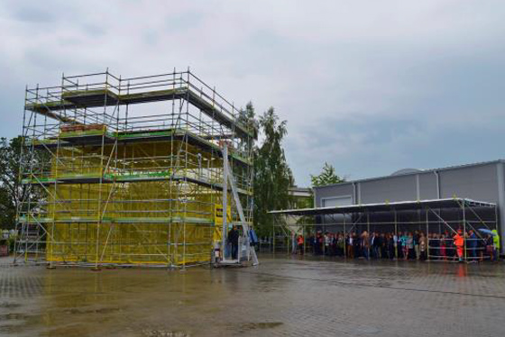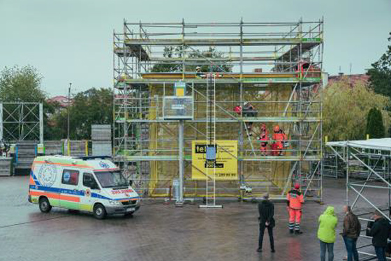 Ostatni pokaz należał do zespołu telka i Służb Ratowniczych. Podczas tej prezentacji chcieliśmy wykazać, jaką rolę w bezpieczeństwie mają promowane przez nas rozwiązania. Pokazaliśmy, że zastosowanie schodni zamiast pionu komunikacyjnego nie tylko zwiększa wygodę użytkowania, ale również znacząco skraca czas ewakuacji z rusztowania, w konsekwencji zwiększając szanse uratowania życia poszkodowanemu.